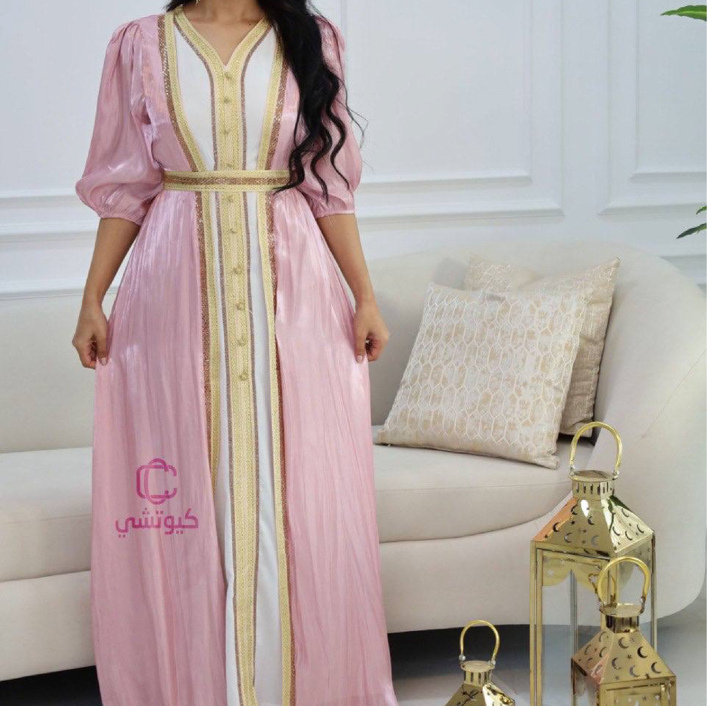 - الزينة والتطريز: حواف مطرزة بخيوط ذهبية لامعة تمنح التصميم لمسة راقية.
