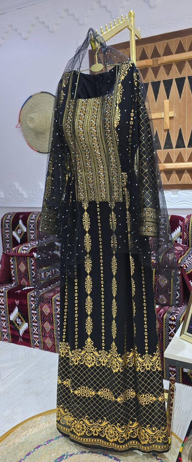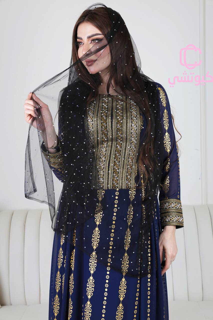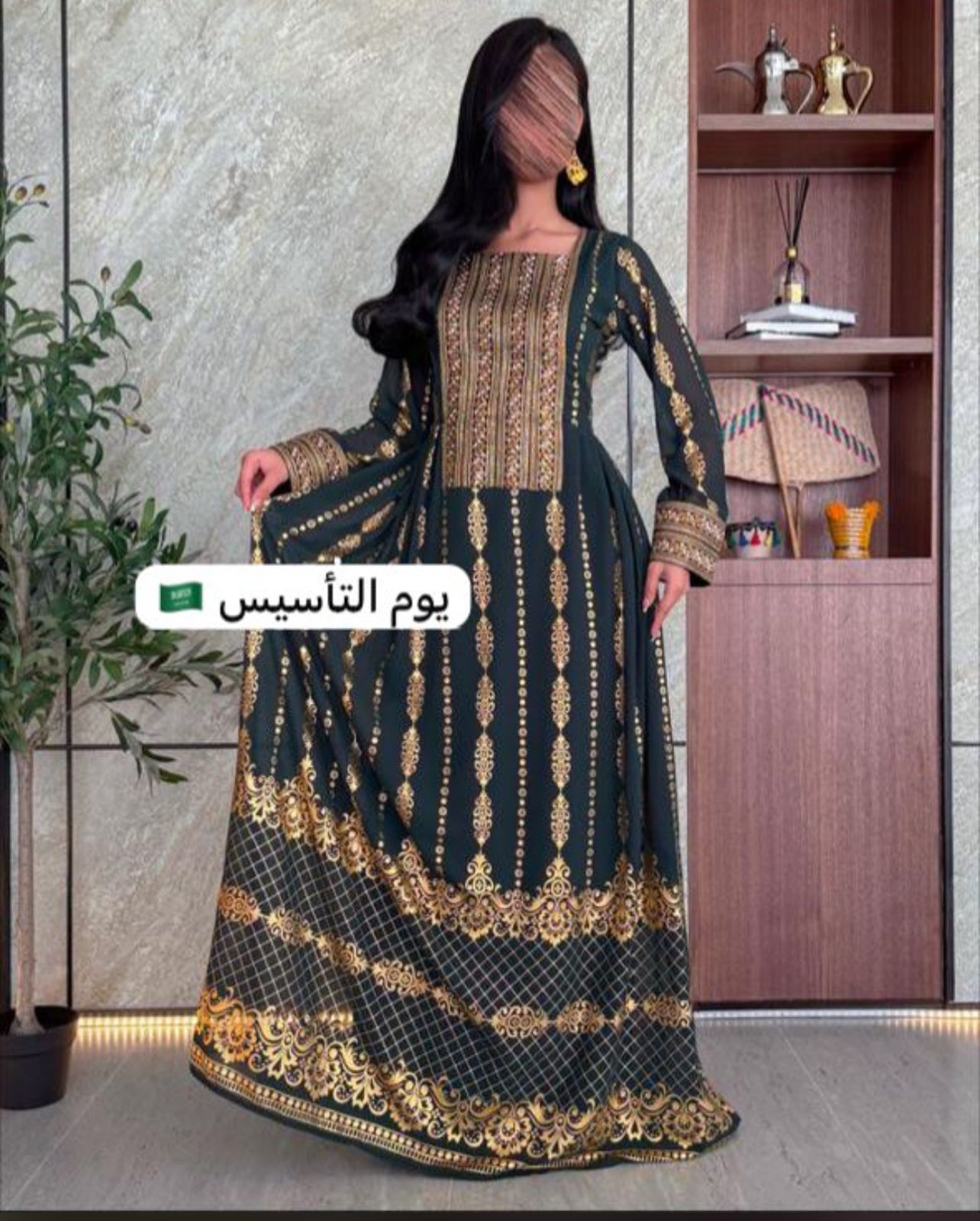 قصّة ملوكية تمنحك حضورًا فاخرًا وأناقة ملفتة في كل مناسبة، بتطريز ذهبي بارز وتصميم بثلاثة ألوان لتناسب ذوقك وشخصيتك.