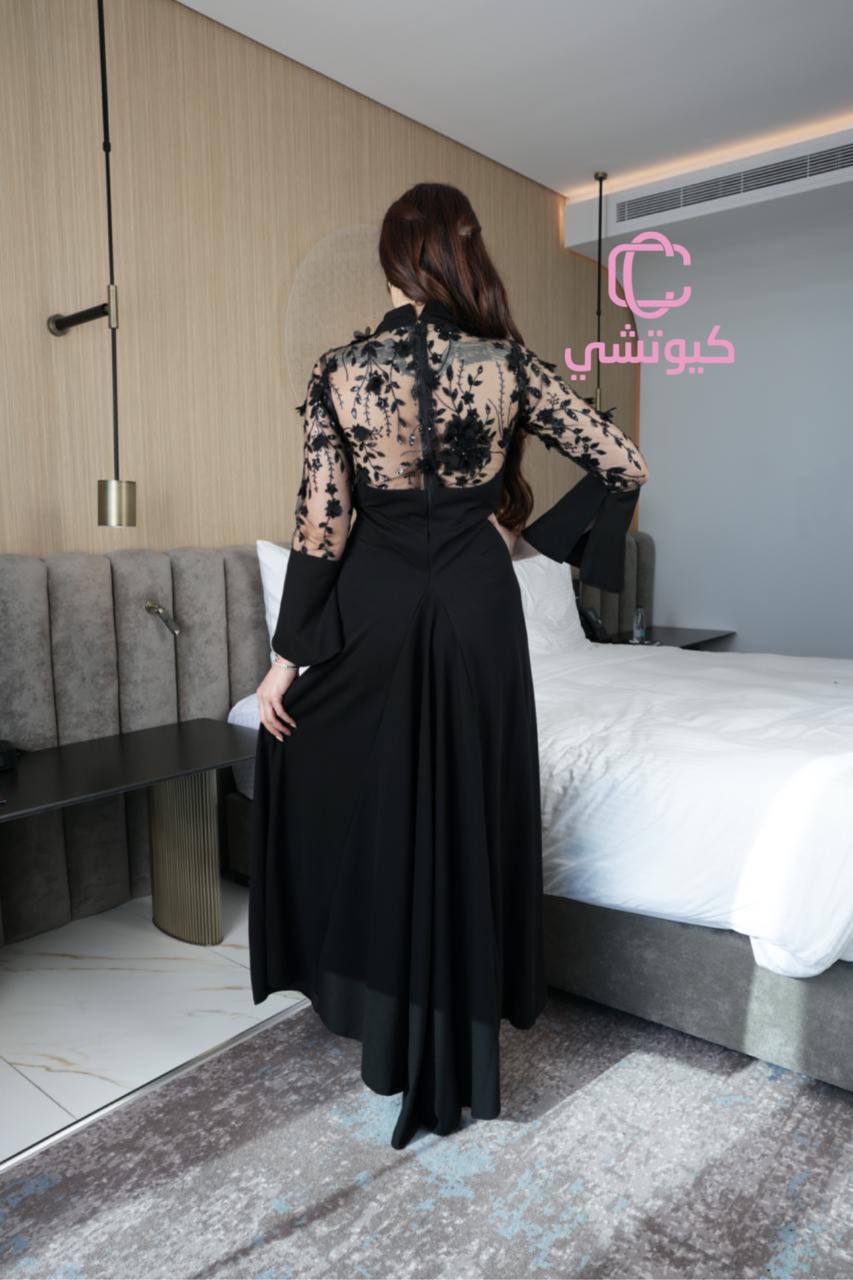 الأسود لون الأناقة الأزلية، والفستان مصمم ليبرز جمال قوامك بطريقة راقية ومحتشمة. الأكمام المدروسة تضفي لمسة من الرقي والأنوثة، بينما قماش الكريب الاسترتش يضمن الراحة والثقة طوال اليوم.