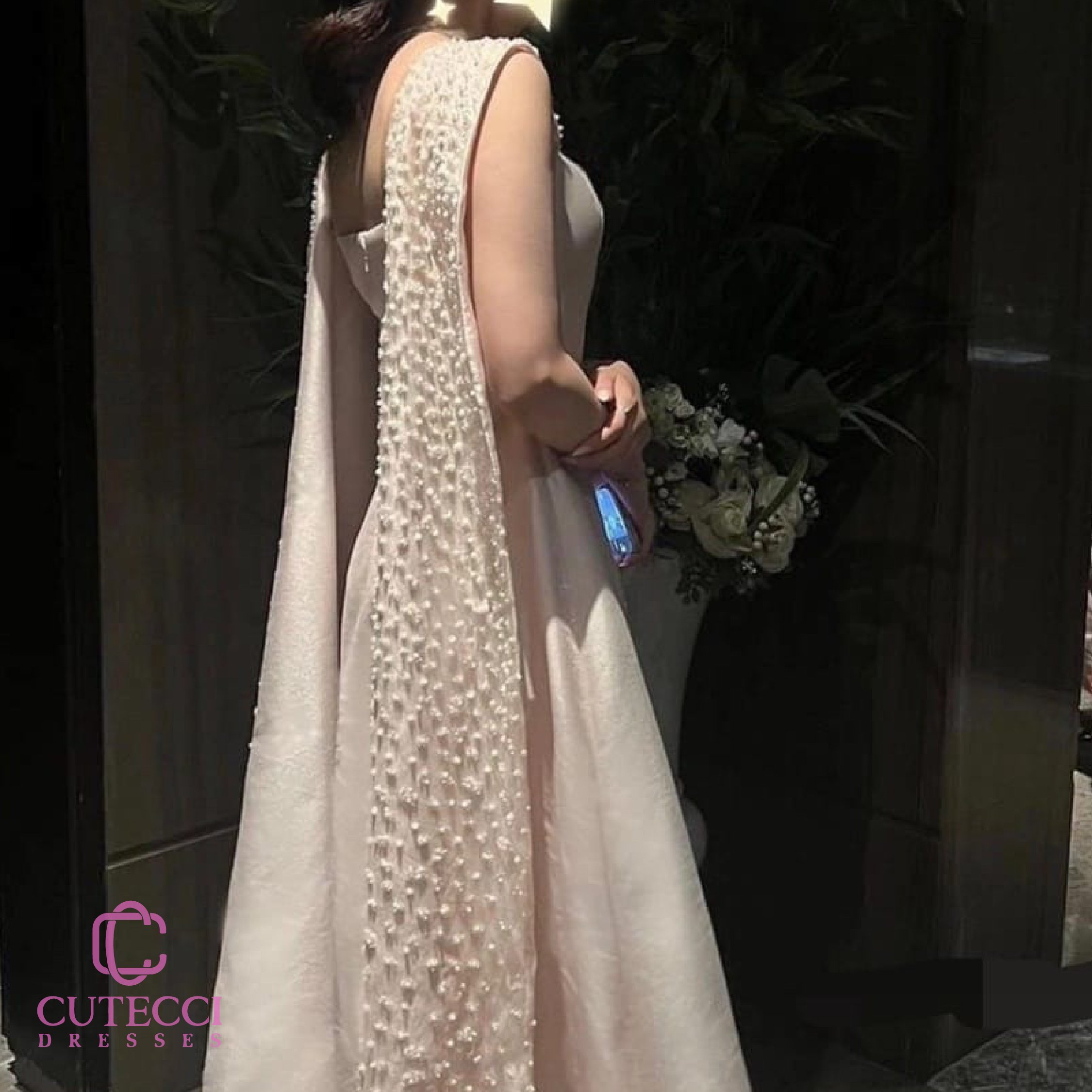 تألقي مع فستان خطوبة لحمي ساتان ملكي من Cutecci بتصميم فاخر يناسب السهرات والخطوبة