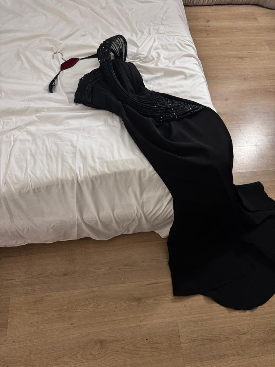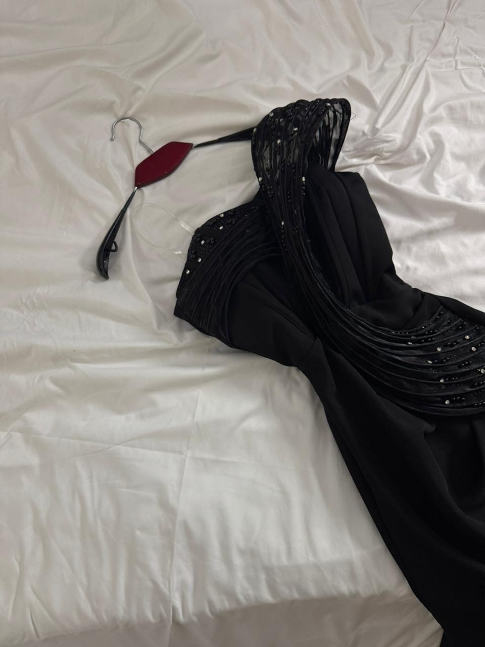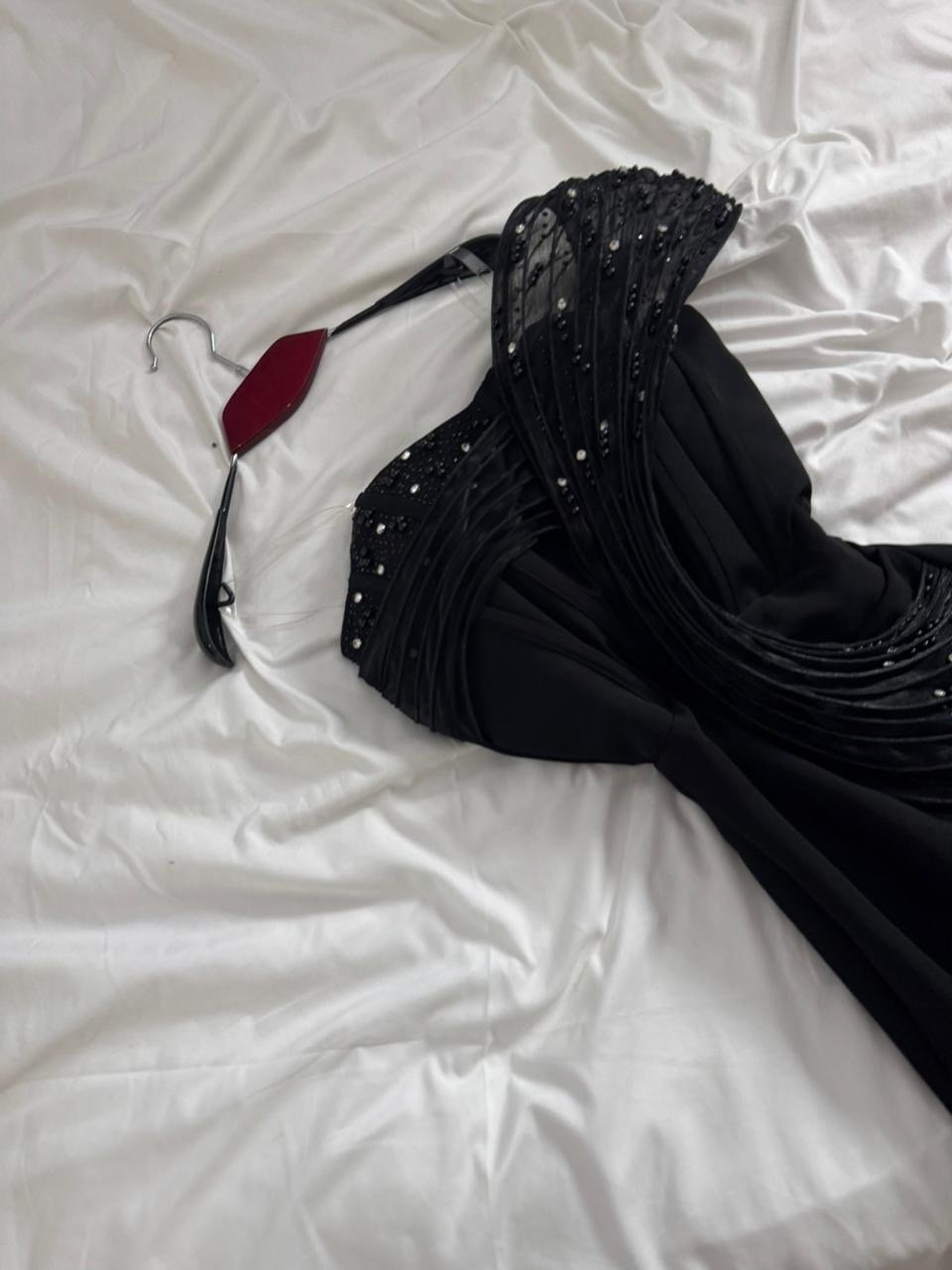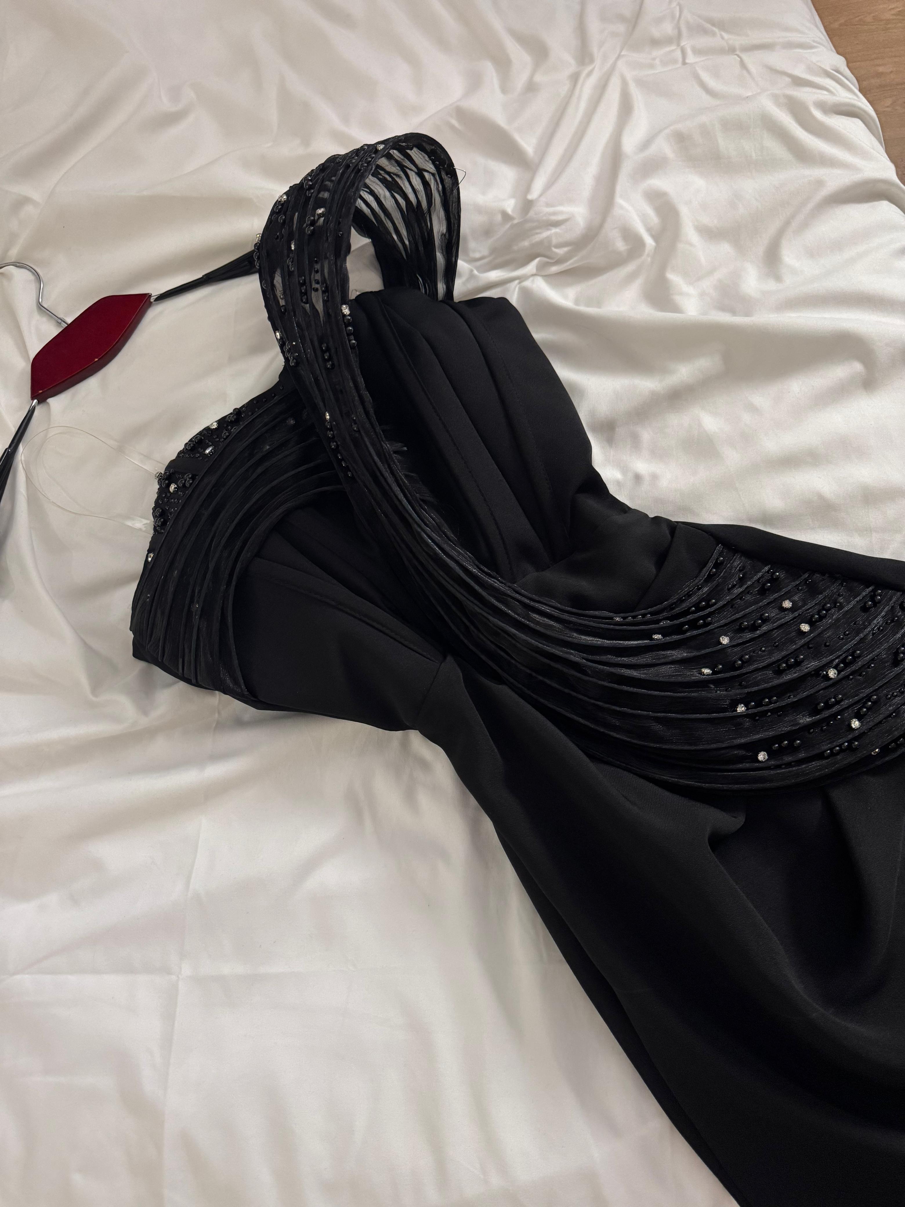 اللون والقماش: يأتي بلون أسود عميق يرمز للفخامة والجاذبية، مصنوع من خامة باربي الفاخرة التي تنسدل بنعومة وتُبرز أنوثتك بكل رقي وأناقة.