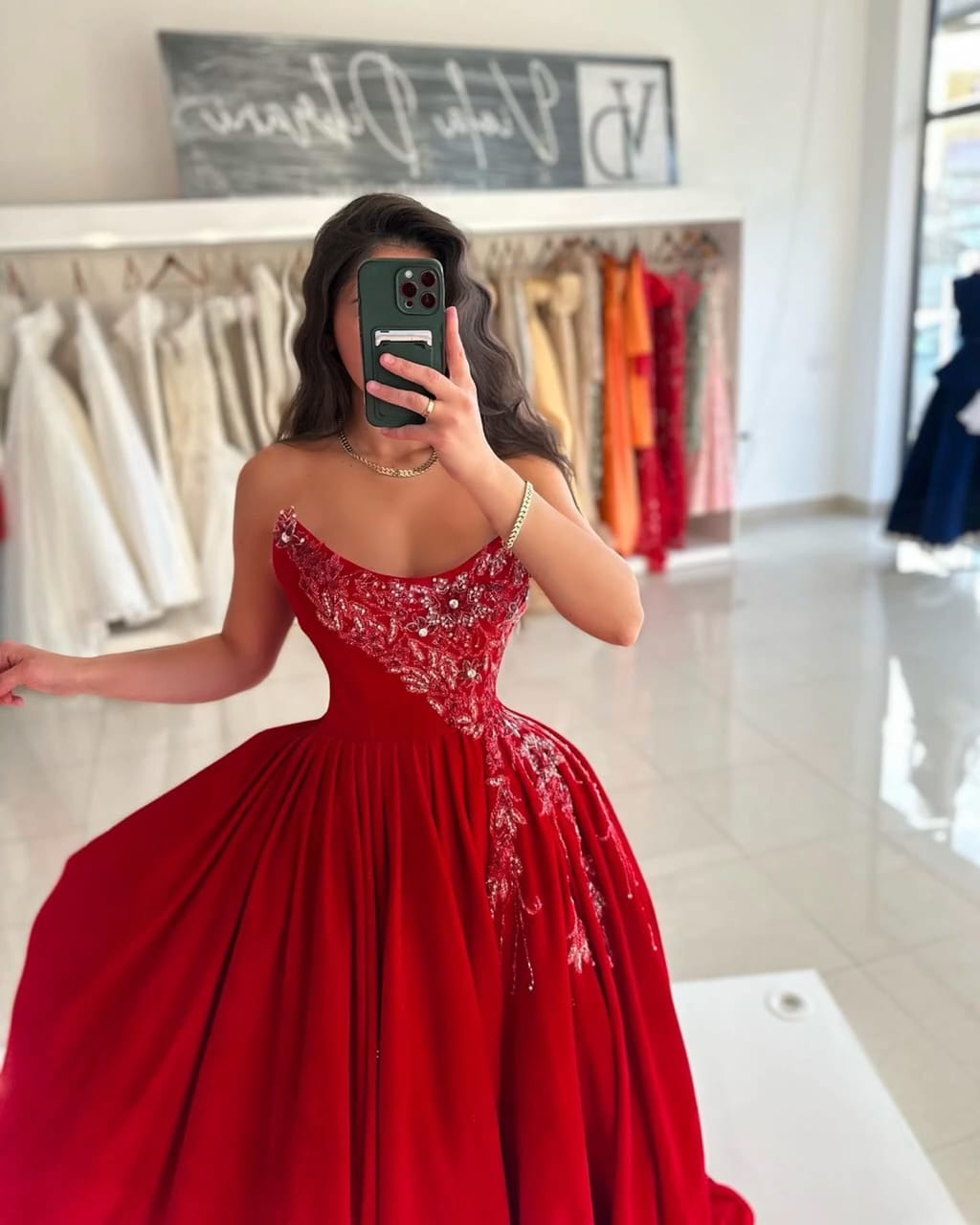 تألقي بإطلالة ملكية مع فستان سهرة احمر تطريز راااقي من Cutecci المصمم ليبرز أناقتك بكل فخامة.