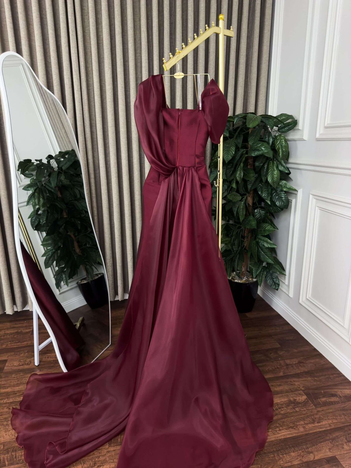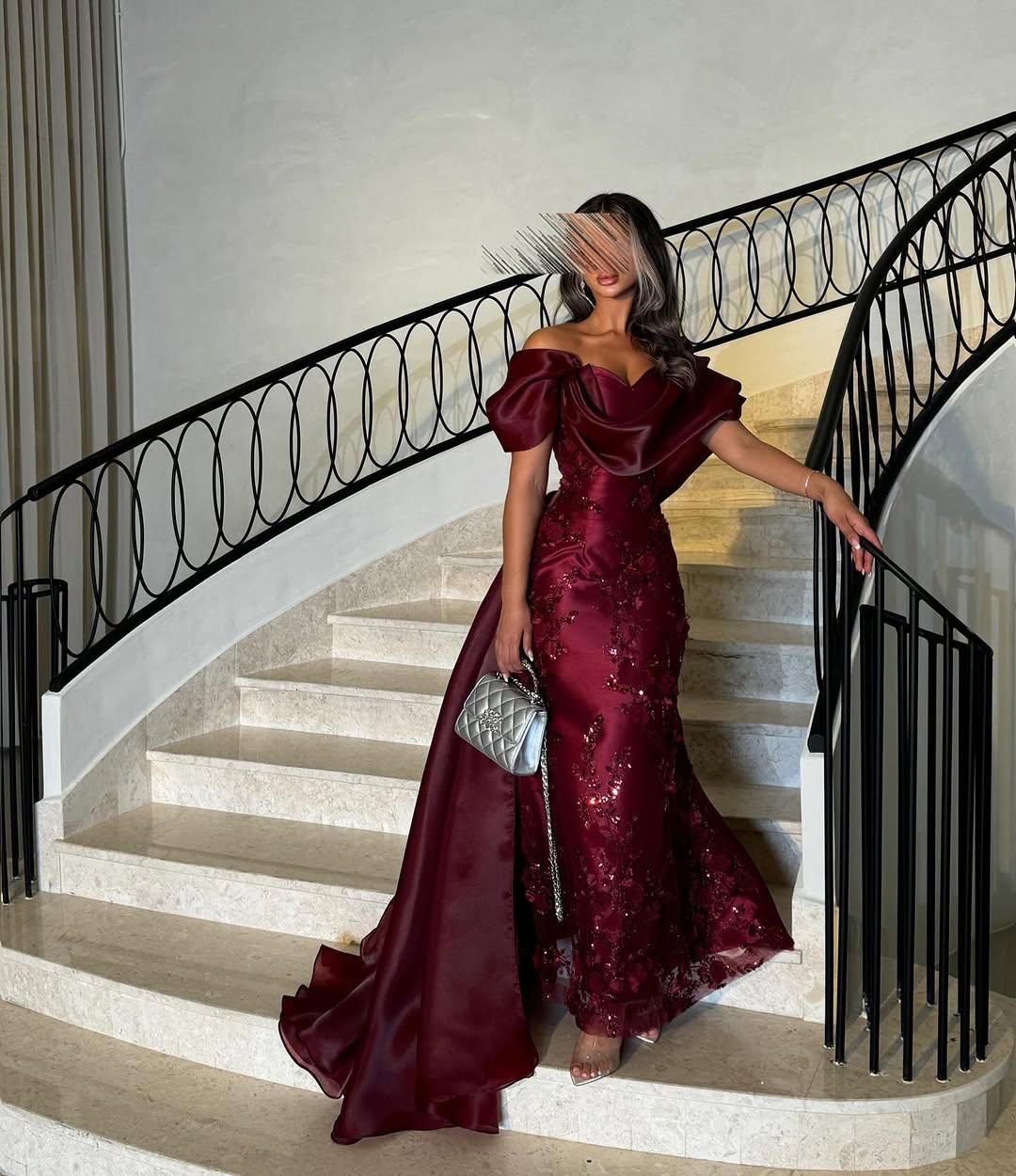 مميزات فستان سهرة برغندي انسيابي رقيق