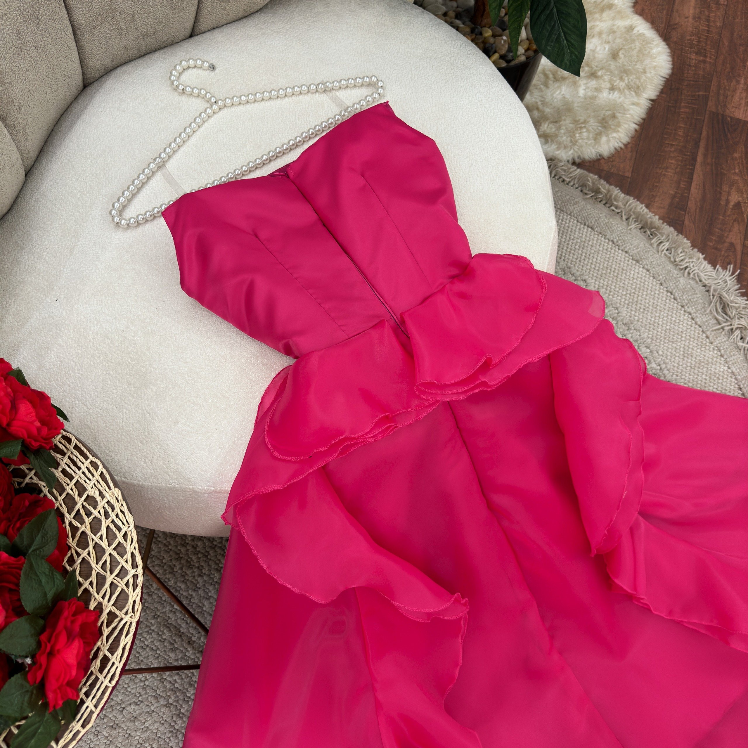 - طبقات متطايرة تضيف حركة وجمال للمظهر النهائي للفستان.