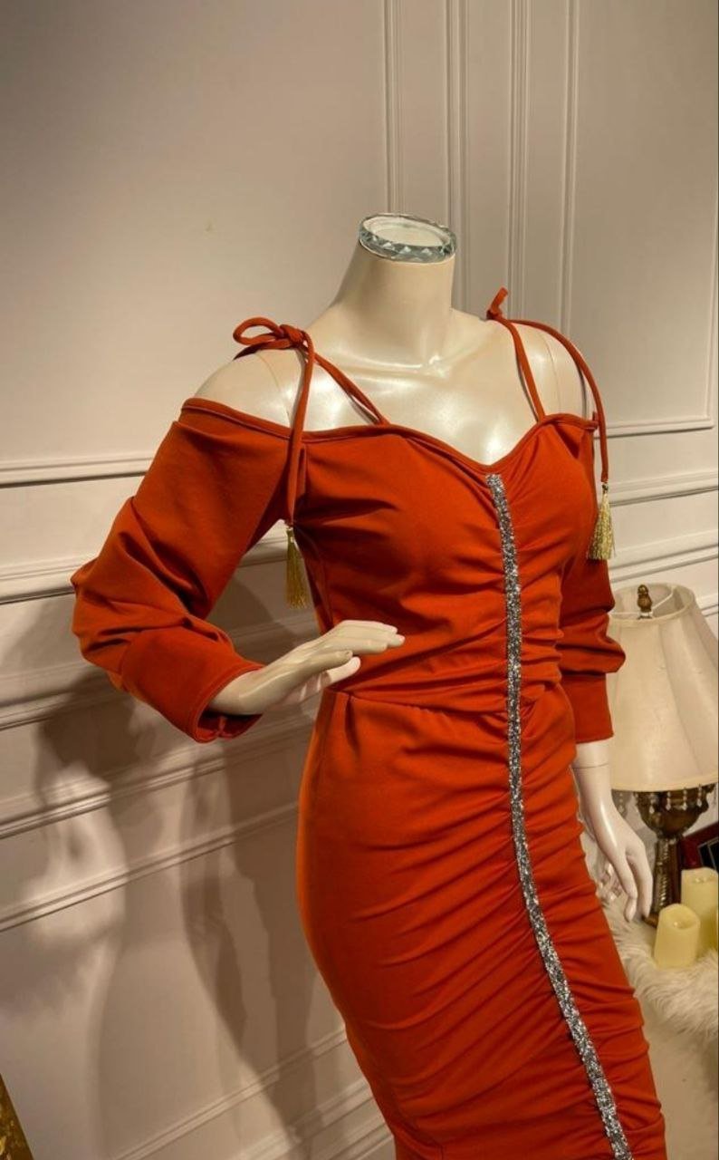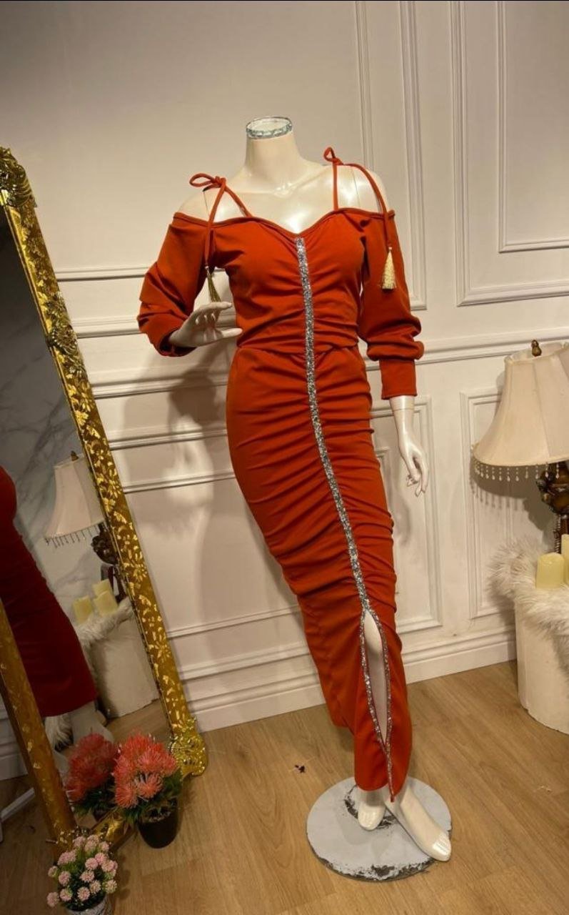 تم استخدام أجود أنواع الأقمشة اللي تمنحك إحساس بالراحة والثبات مهما طال وقت المناسبة. التصميم يخلي الفستان خفيف على الجسم، عملي وسهل الحركة، مع مقاس يناسبك ويناسب معظم أشكال الجسم.