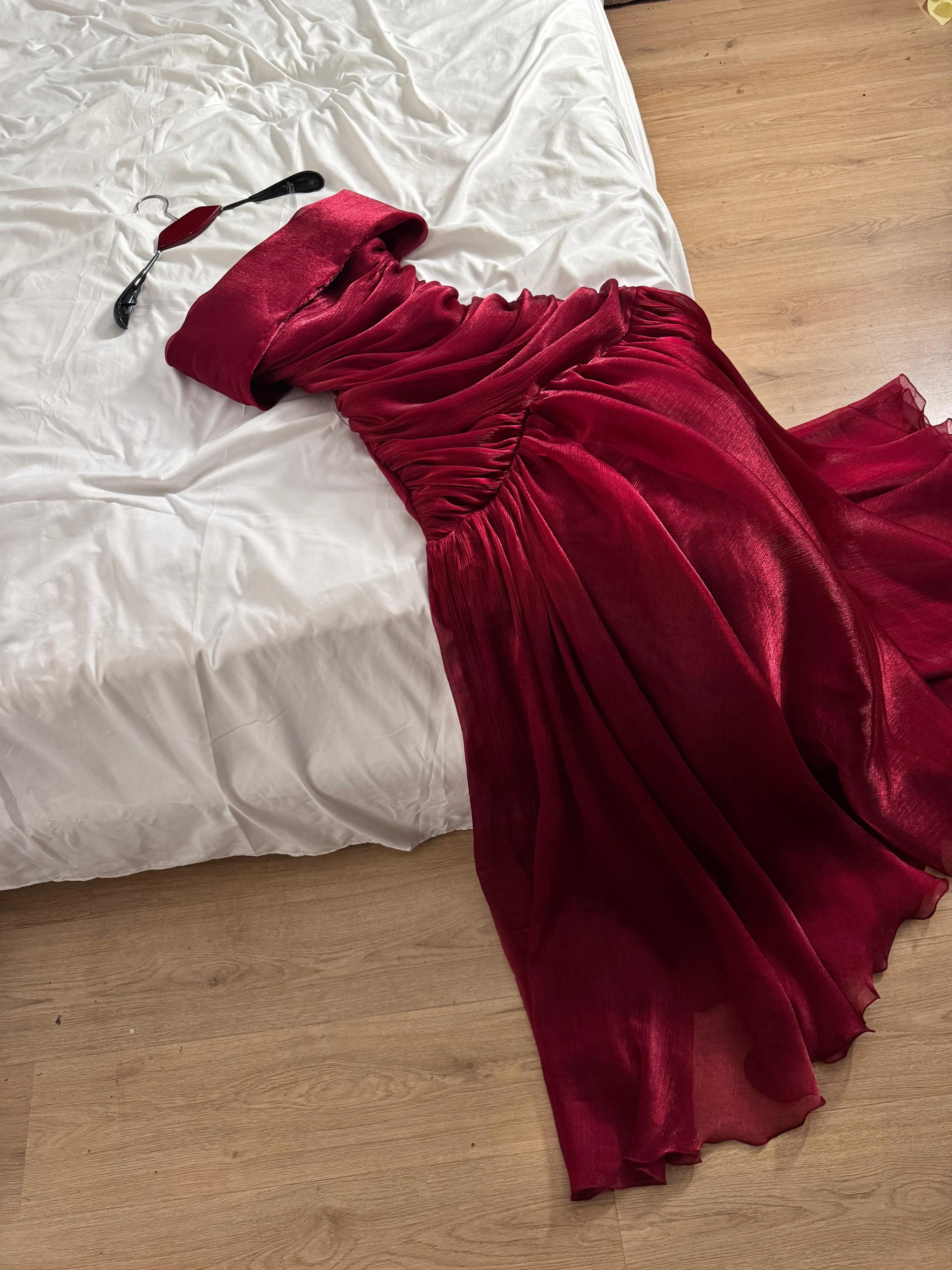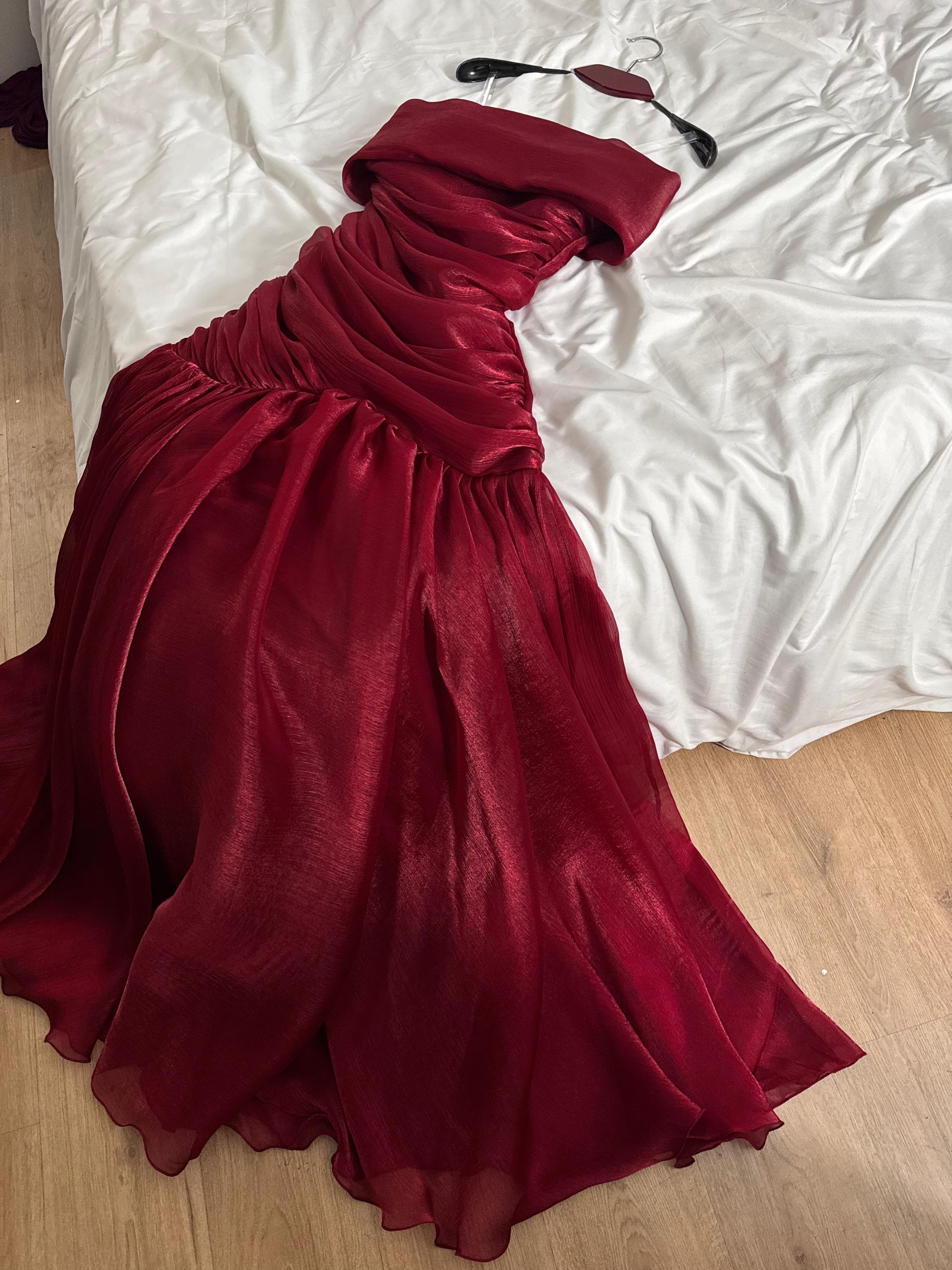 فستان سهرة عنّابي كرنكل من كيوتشي – تصميم فاخر بلون ساحر يمنحك إطلالة ملكية آسرة.