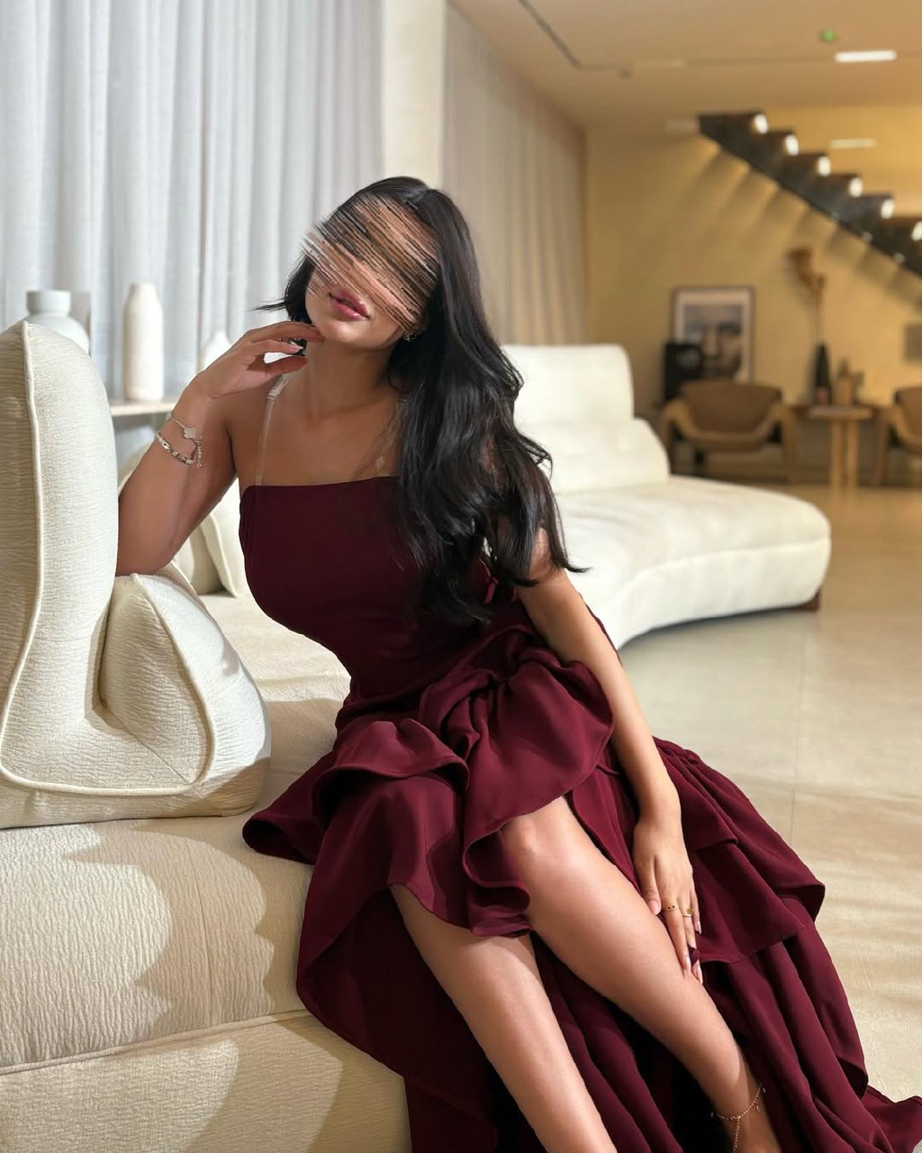 تصميم أنيق بلون عودي جذّاب، مثالي لحفلات السهرة الفخمة والمناسبات الراقية، ويعكس حضورك الفريد بكل تفاصيله.