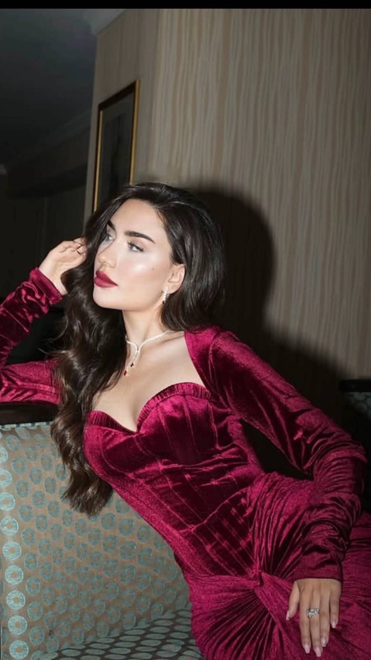 فستان مخملي بلون عودي أنيق بقصّة ضيّقة تبرز جمال الخصر ويمنحك حضورًا آسرًا في السهرات والمناسبات الراقية.