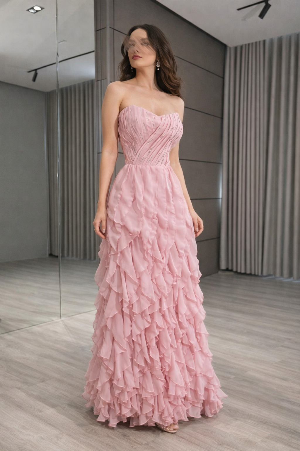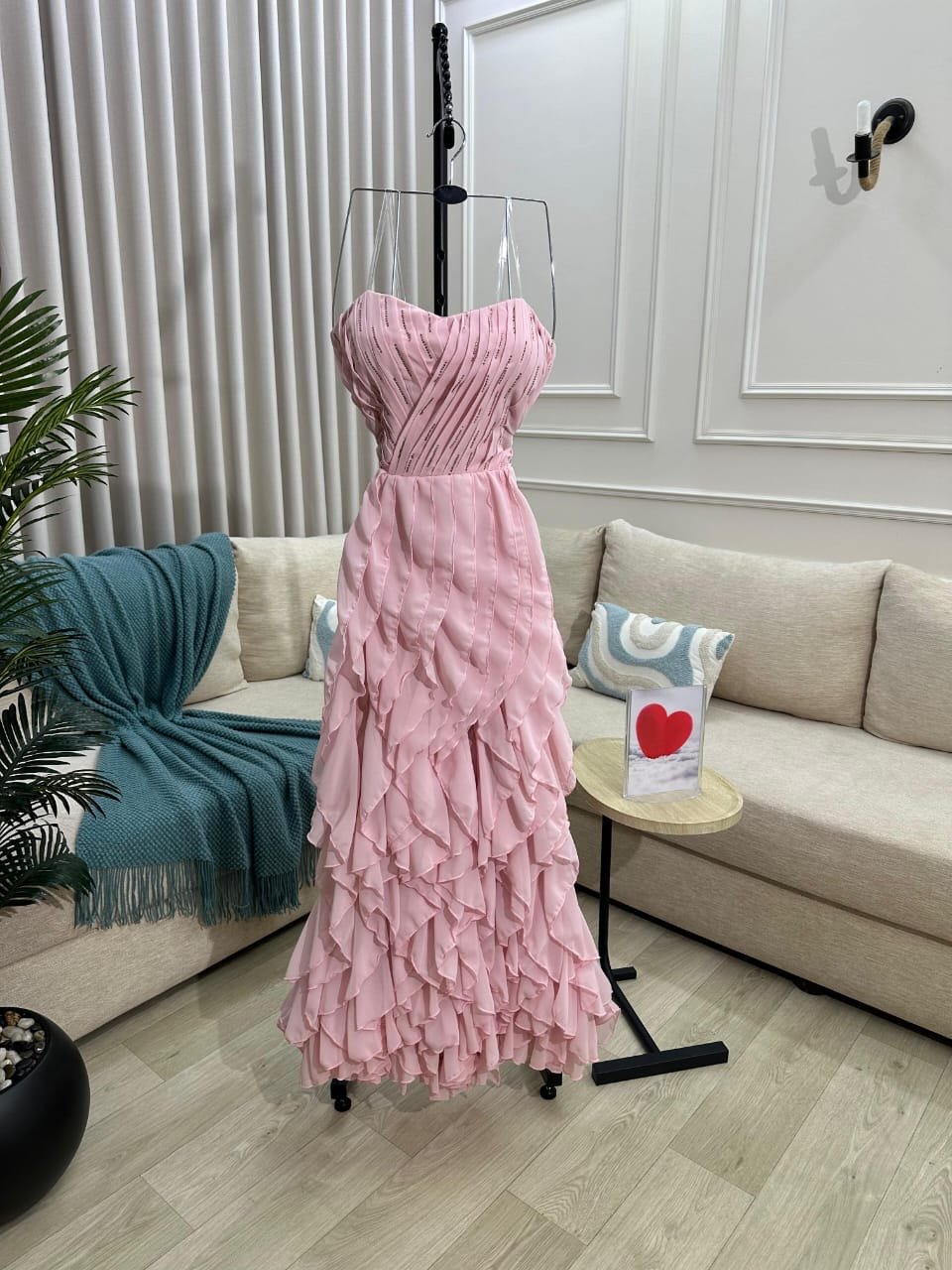 مثالي لمناسبات الخطوبة، العشاء الرسمي، والسهرات الخاصة، حيث يمنحك إطلالة حالمة تشبه الأميرات.